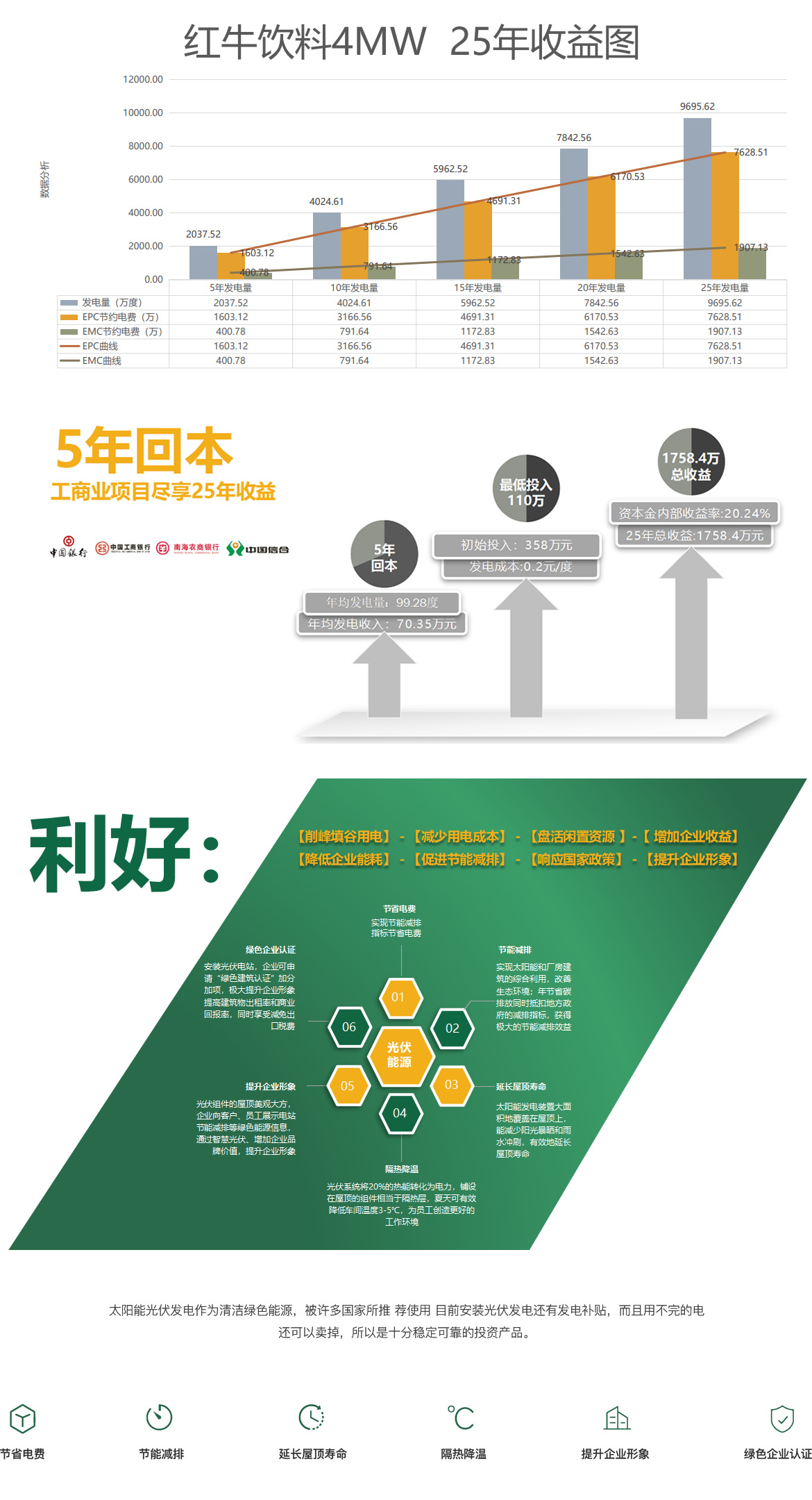 我們可以理解為:廠房頂以前光禿禿,現(xiàn)在成了一座陽光能源‘銀行’,不澆水,不施肥。靜靜地躺著曬太陽就可以生錢,讓閑置資源變成固定收益資產(chǎn)。
